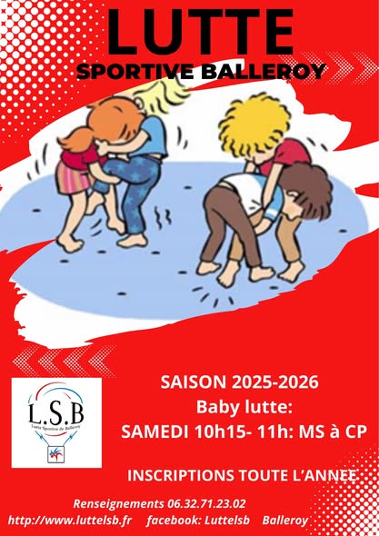 Des séances pour le baby-lutte, c’est le samedi : si tu as envie de te dépasser, de te lancer des défis , prendre confiance en toi, d’augmenter ta motricité, de faire des jeux amusants, viens essayer.